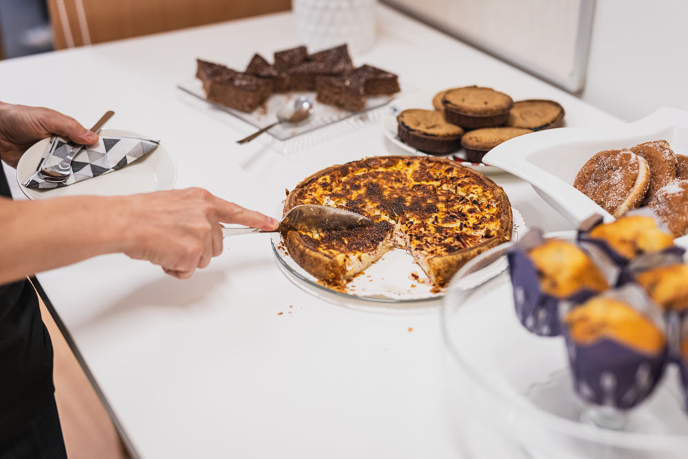 Omat ruuat ja juomat ovat tiloissamme sallitut. Vuokraaja voi tilata ruuat ja juomat myös lisäpalveluna tilauksen yhteydessä, jolloin ne toimitetaan tilaan valmiiksi. Vuokraaja vastaa vuokra-aikana keittiön käytöstä, siisteydestä ja turvallisuudesta.